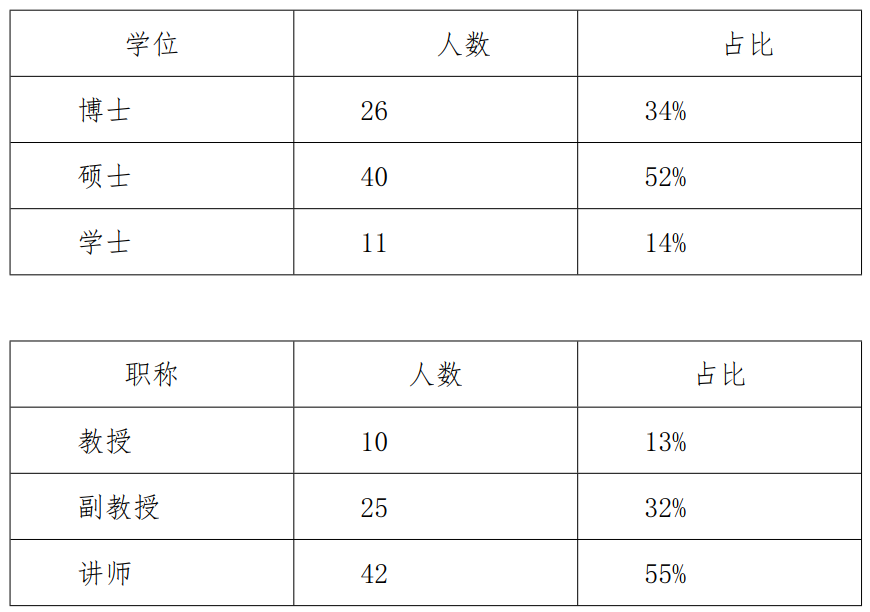 截止目前,示范中心共有教师77 名,其中高级职称35名,占比45%。博士26名,占比34%。