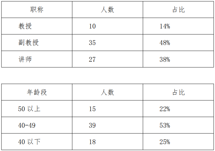 截止目前,示范中心共有教师72名,其中高级职称45名,占比62%。博士28名,占比38% 。