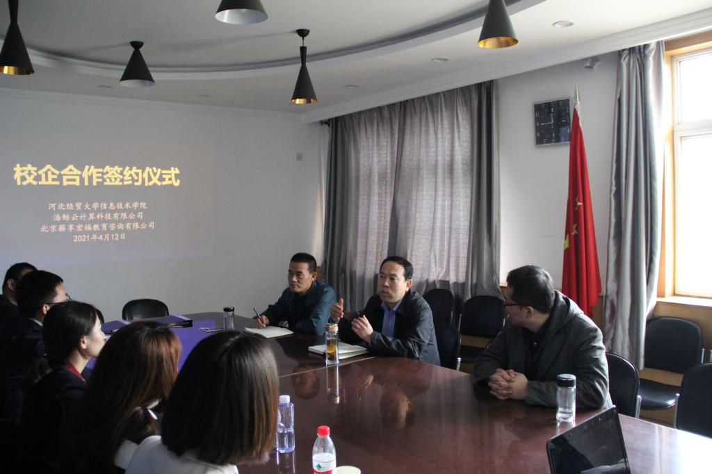 学院领导张振书记、韩玉强书记对本次招聘会给予高度重视,就业办公室主任赵强出席了签约仪式。浩鲸科技于4月12日下午举行现场招聘宣讲。招聘会上,陆总通过播放宣传片、PPT等方式向同学们介绍云计算的发展历程及发展前景。此外,陆总从往年的薪资待遇、人才培训计划等方面进行讲述,并针对各发展阶段向同学们详细地介绍了公司的人才培养计划、人员需求及职业发展方向。同时,他鼓励同学们不断钻研专业知识,提升自我专业知识素养。