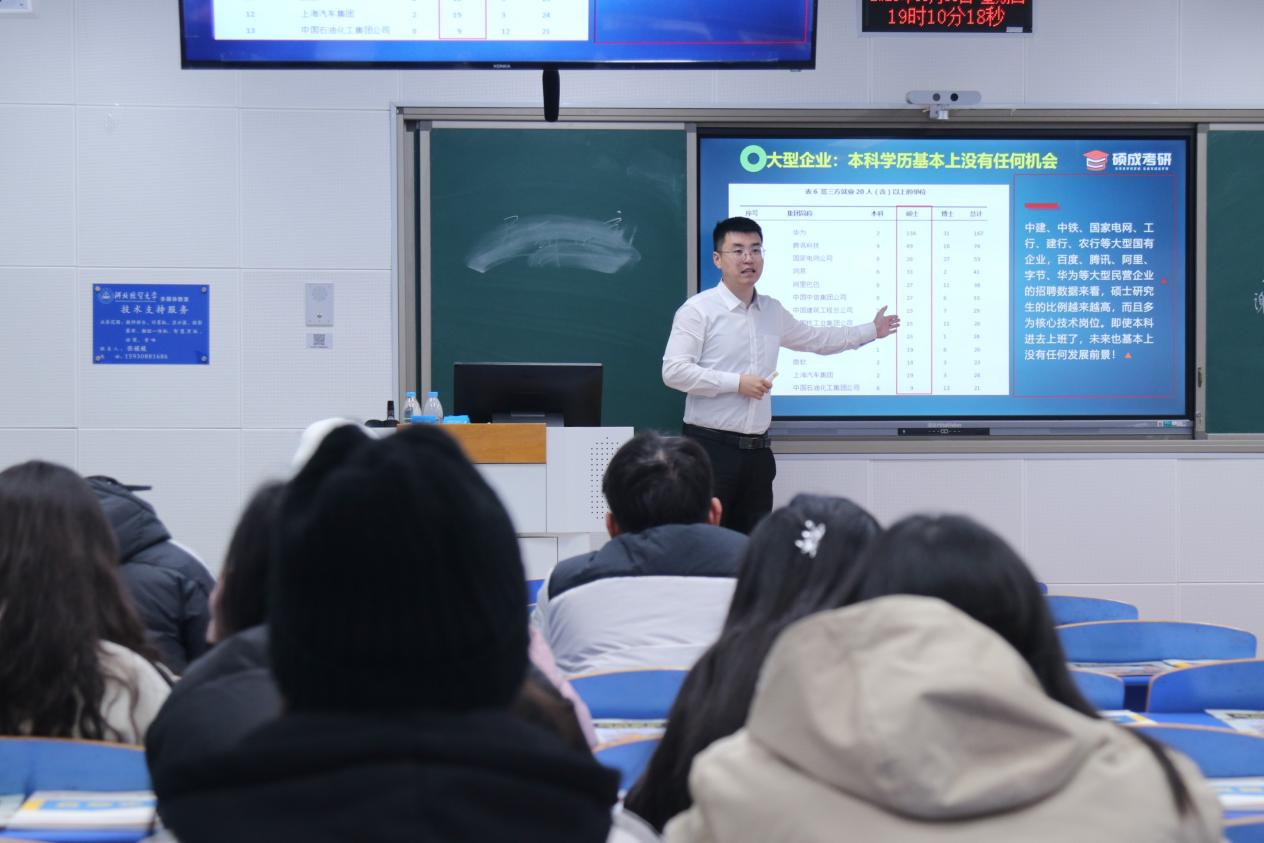 为更好地服务即将面临考研的大四学生,MG冰球突破官网网站联合硕成考研团队于12月1日晚在北三教B102举办大四学生考研冲刺策略讲座,全体大四学生参加。