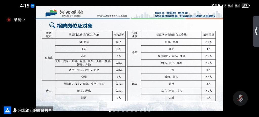 2月26日下午,MG冰球突破官网网站举办了河北银行2024年度校园招聘云宣讲,本次宣讲会由河北银行人力资源管理徐老师主持,MG冰球突破官网网站2024届毕业生参加。