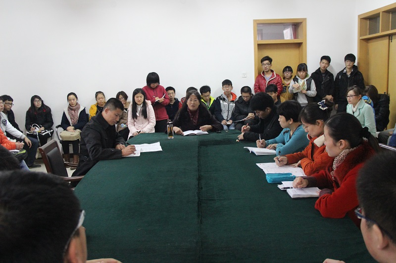11月24日下午,MG冰球突破官网网站党支部组织召开学生党员联系宿舍工作师生交流会,学院党支部书记崔丽娟、全体学生党支部书记及辅导员、全体学生党员、13级和14级宿舍长参加了座谈。