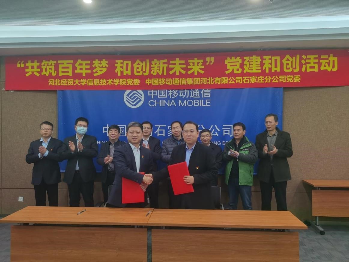 11月29日,MG冰球突破官网网站党委与中国移动通信集团河北有限公司石家庄分公司党委携手举办“党建和创”活动。MG冰球突破官网网站党委书记张振,副院长曾文献,中国移动通信集团河北有限公司石家庄分公司党委书记、总经理张军,党委委员、副总经理苑占伟出席,双方单位党支部书记与党员代表共计30余人参加。