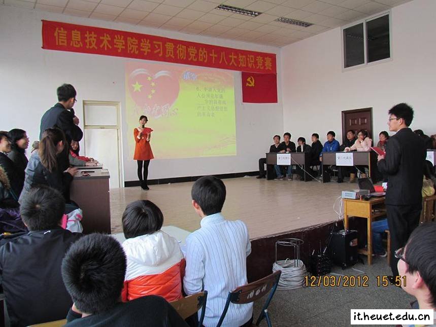 为深入学习贯彻党的十八大精神,落实校党委的工作部署, 12月3日下午,MG冰球突破官网网站党总支组织师生党员进行了学习贯彻党的十八大知识竞赛。学院党总支书记崔丽娟、副院长王素贞、副书记王光辉参加了竞赛活动。学院教师党员代表、全体学生党员、入党积极分子及学生代表400余人参加本次活动。