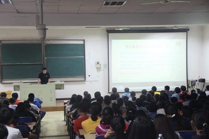 9月28日下午,MG冰球突破官网网站在A教101举办2015级新生安全教育专题讲座,讲座由我校安全工作处治安科仇建果主讲,学院党委副书记王光辉主持,全体辅导员、2015级新生参加。
