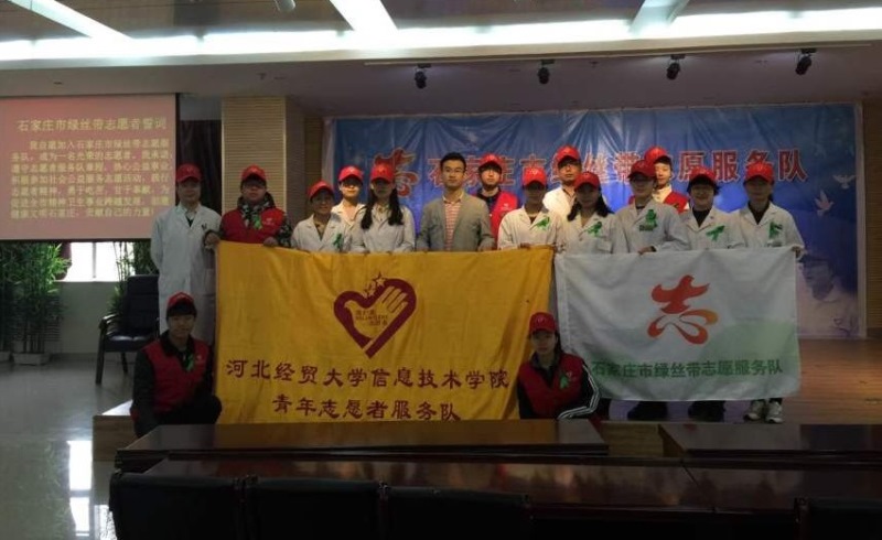 为扩大志愿服务范围,提高志愿服务水平,MG冰球突破官网网站青年志愿者大队于3月9日参加石家庄市绿丝带志愿服务队成立仪式。